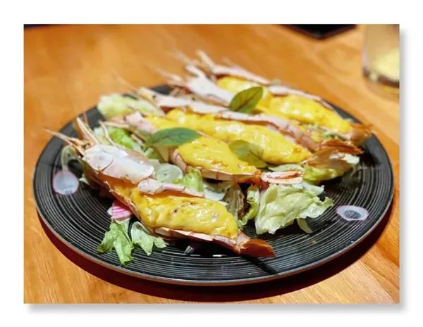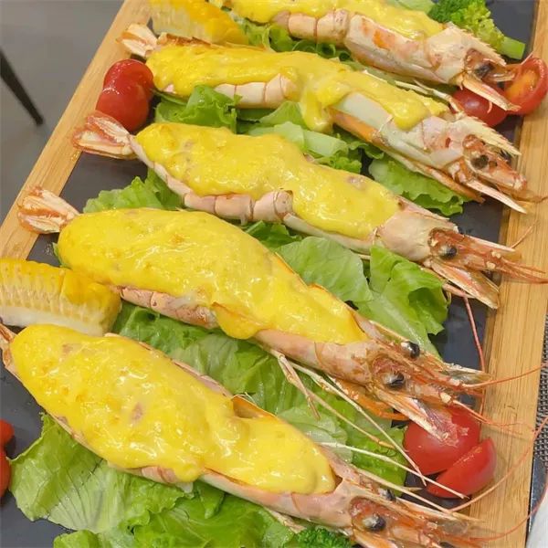 芝士焗大紅蝦蝦肉緊致鮮活,Q彈純潤的蝦肉,與奶香濃郁的芝士相融合增添了更多層次,配上精致的擺盤(pán),光從視覺(jué)上就已經(jīng)捕獲住了我們的芳心。一大口嗦入,蝦肉的鮮美被牢牢鎖定在酥脆的蝦殼之中。