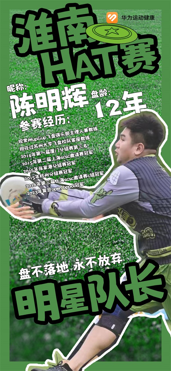 2023首屆淮南極限飛盤(pán)HAT賽8位明星隊長(cháng)名單公布啦?。ㄒ韵虏环峙琶群螅┰谫愂陆?jīng)驗豐富的明星隊長(cháng)帶領(lǐng)下來(lái)淮南打一場(chǎng)收獲滿(mǎn)滿(mǎn)的HAT賽吧!在比賽中成長(cháng),一起快樂(lè )飛盤(pán)!