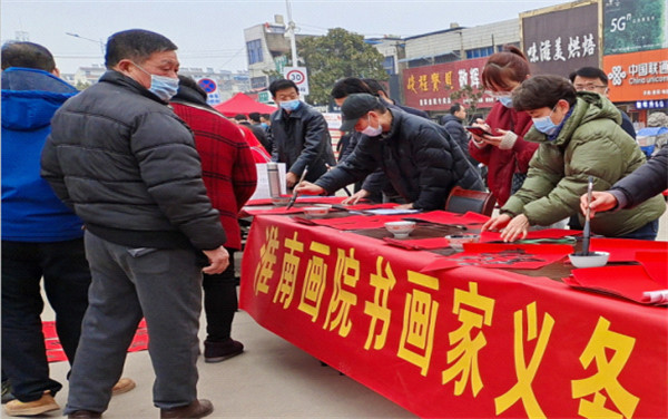 市文化和旅游局精心策劃,組織淮南藝術(shù)劇院、淮南畫(huà)院文藝工作者,為毛集實(shí)驗區人民群眾送去文化惠民的陣陣暖意?;茨纤囆g(shù)劇院開(kāi)展了主題為“我們的中國夢(mèng)”---文化進(jìn)萬(wàn)家的文藝演出活動(dòng),以舞蹈、歌曲、戲曲等喜聞樂(lè )見(jiàn)的節目形式積極宣傳黨的方針政策、謳歌黨的十九屆五中全會(huì )精神,為群眾送去更多、更好、更美的精神食糧,滿(mǎn)足人們日益增長(cháng)的精神文化需求?;茨袭?huà)院書(shū)畫(huà)家開(kāi)展寫(xiě)春聯(lián)、送春聯(lián)活動(dòng),書(shū)法家們揮毫潑墨,將一幅幅紅紅火火的對聯(lián),一個(gè)個(gè)飽滿(mǎn)的“?!弊置赓M贈送給人民群眾,既普及了傳統文化,又增添了喜慶氣氛。與以往不同的是,參加活動(dòng)的工作人員和群眾都戴上了口罩。