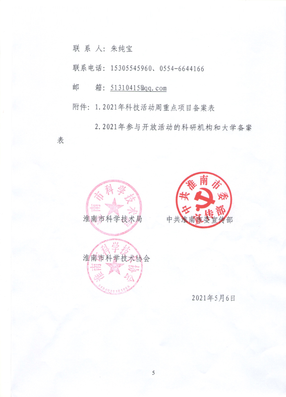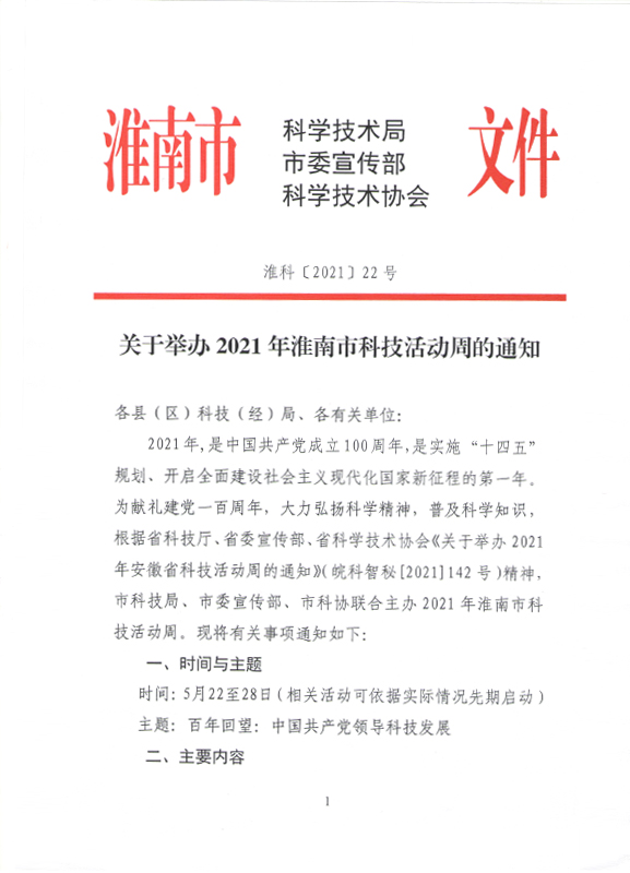 關(guān)于舉辦2021年淮南市科技活動(dòng)周的通知