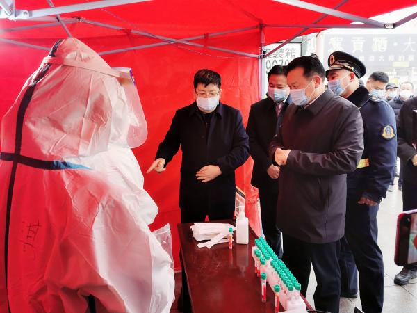 在防控點(diǎn)現場(chǎng),任澤鋒與一線(xiàn)防控人員親切交談,并對他們的堅守和辛勤工作表示誠摯的問(wèn)候和衷心的感謝。李輝詳細匯報了疫情防控點(diǎn)組建、人員配備、值班值守、車(chē)(客)流量以及各項防控措施落實(shí)情況,任澤鋒對交通防控工作給予了充分肯定。任澤鋒強調,當前疫情防控形勢依然嚴峻,各級各部門(mén)要進(jìn)一步提高政治站位,堅持底線(xiàn)思維和問(wèn)題導向,在思想上不松懈、工作上不松勁,層層壓緊壓實(shí)責任,時(shí)刻緊繃疫情防控這根弦,慎終如始抓好常態(tài)化疫情防控工作,全力以赴把各項防控措施落實(shí)落細落具體,齊心協(xié)力打贏(yíng)疫情防控阻擊戰。同時(shí),叮囑防控工作人員在堅守崗位的同時(shí),要做好自我防護、防凍保暖等安全防護措施,確保自身安全。