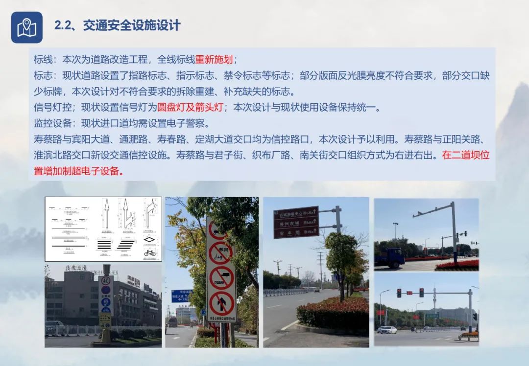 壽蔡路提升改造工程規劃方案還包括:交通安全設施設計、雨污水設計、照明設計、綠化設計等,工程投資估算10535萬(wàn)元。
