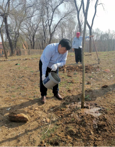 市文旅局開(kāi)展黨員義務(wù)植樹(shù)活動(dòng) 為深入踐行“綠水青山就是金山銀山”的生態(tài)理念,3月11日下午,在第44個(gè)植樹(shù)節來(lái)臨之際,淮南市文旅局組織機關(guān)黨支部和市大通萬(wàn)人坑教育館黨支部聯(lián)合開(kāi)展黨員義務(wù)植樹(shù)主題黨日活動(dòng)。局領(lǐng)導程昊、岳葆春、付義林參加。黨員志愿者們帶著(zhù)鐵鍬、水桶等工具來(lái)到萬(wàn)人坑教育館西南角的一片空地上。剛一到達,大家便迅速投入到勞動(dòng)中,三四人一組,有的負責挖坑,有的搬運樹(shù)苗,有的填土,有