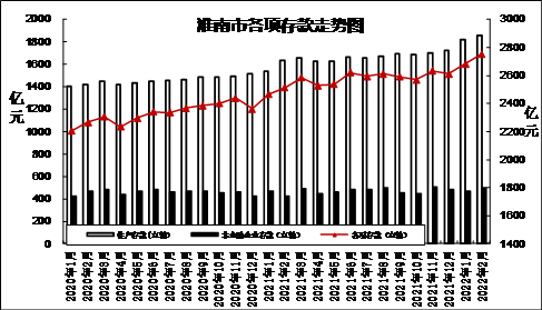2022年2月末,淮南市金融機構人民幣各項存款余額2775.8億元,位于全省第11位,較上月增加74.3億元,增長(cháng)2.8%,較去年同期多增27.4億元;較年初增加145.1億元,增長(cháng)5.6%,較去年同期少增6.4億元。從增量來(lái)看,淮南市各項存款較年初新增量全省排名第9位;從增速來(lái)看,淮南市各項存款較年初增速全省排名第9位。