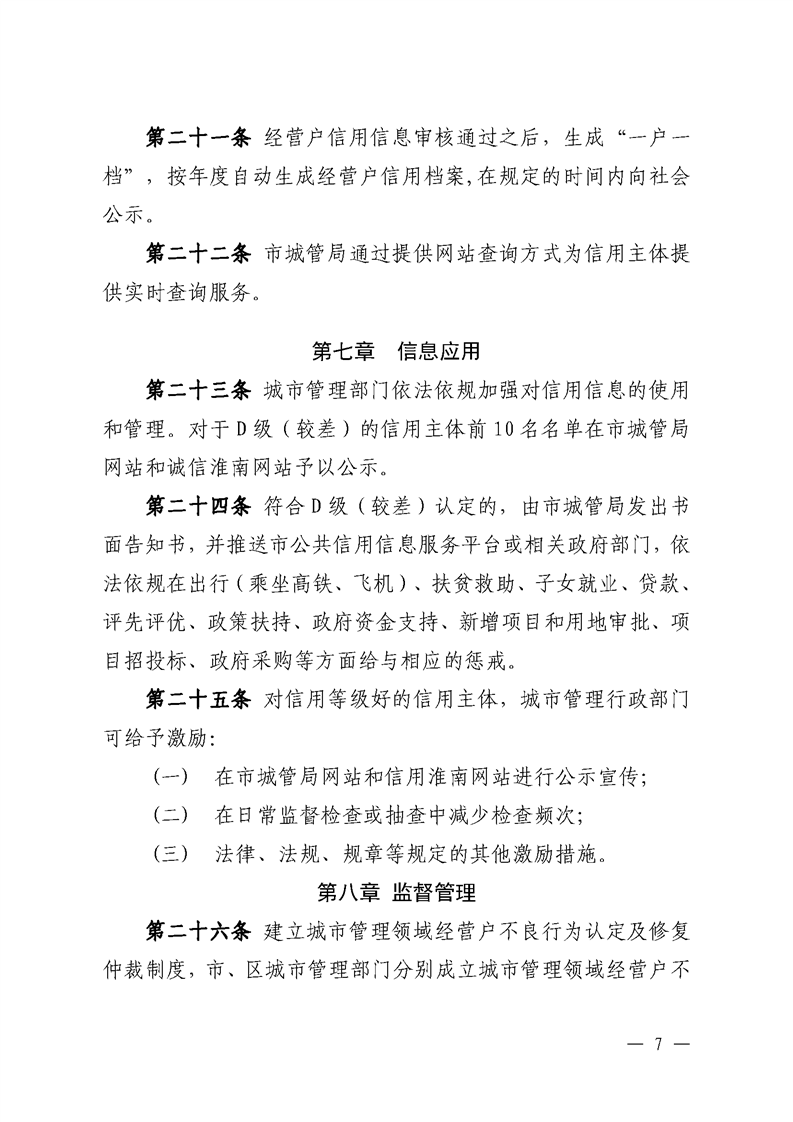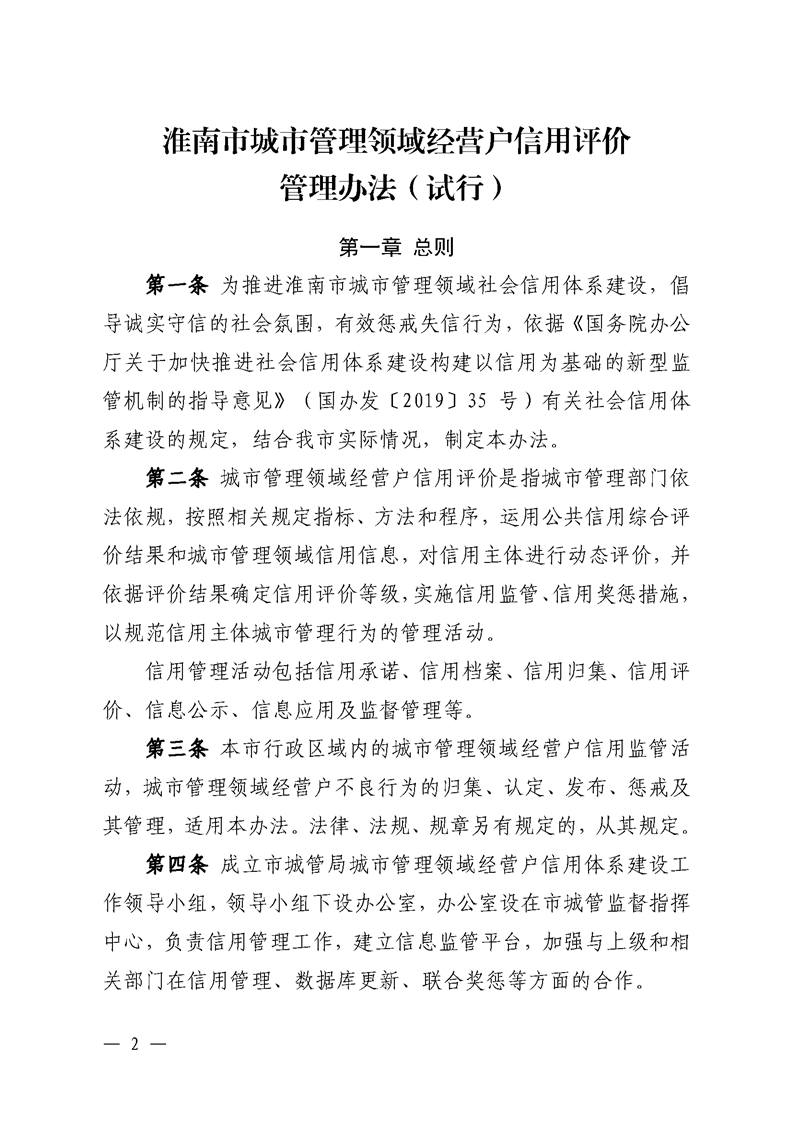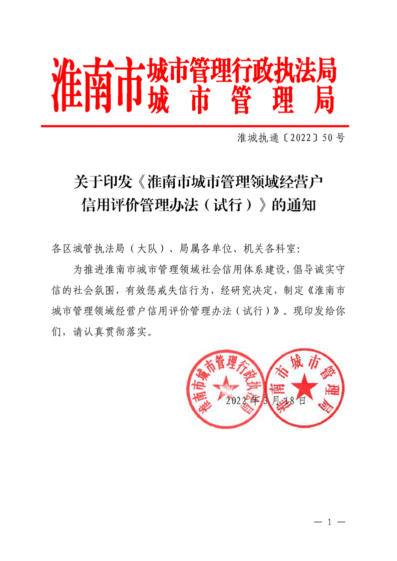 淮南市城管局關(guān)于印發(fā)《淮南市城市管理領(lǐng)域經(jīng)營(yíng)戶(hù)信用評價(jià)管理辦法(試行)》的通知