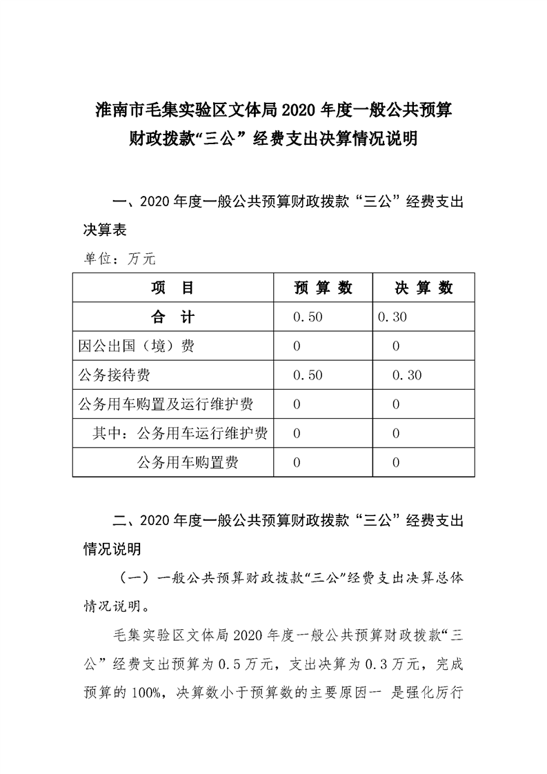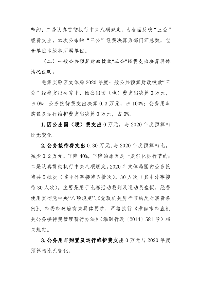 淮南市毛集實(shí)驗區文體局2020年度一般公共預算財政撥款“三公”經(jīng)費支出決算情況說(shuō)明