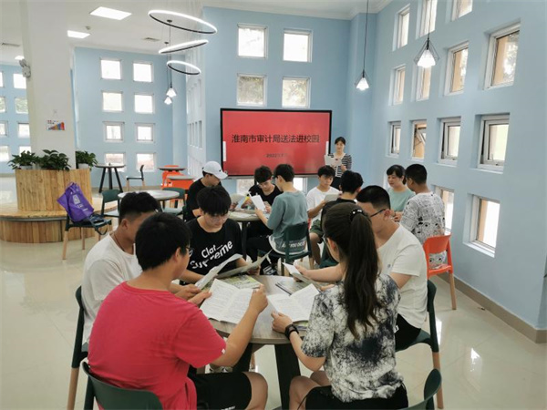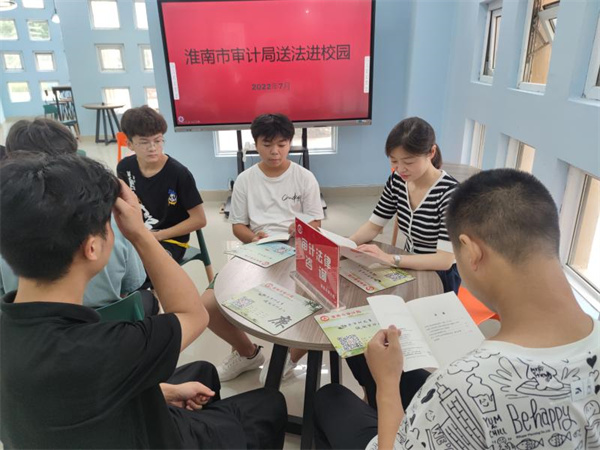 7月5日上午,淮南高新區管委會(huì )綜合法規科一行來(lái)到淮南市職業(yè)教育中心為學(xué)生現場(chǎng)送“法”?;顒?dòng)以面對面交談形式開(kāi)展,圍繞學(xué)生們感興趣的審計問(wèn)題進(jìn)行答疑,如審計的工作內容、審計監督的目標群體、審計職責權限等。同時(shí),我局還向學(xué)生們贈送了審計圖書(shū)、審計圖解、普法禮品等。