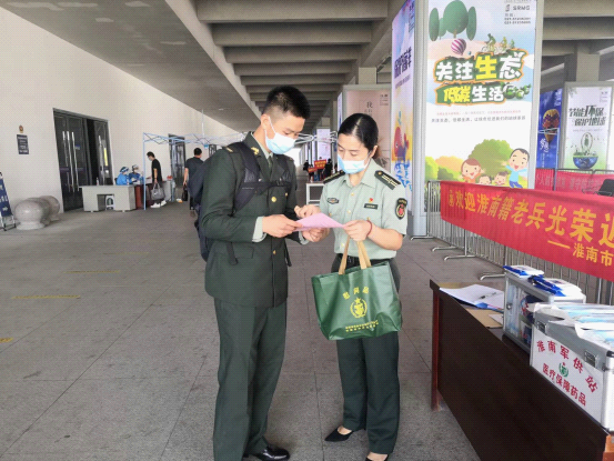 當退役老兵抵達南站時(shí),我站工作人員第一時(shí)間為其登記信息,送上慰問(wèn)禮包,在每一份禮包中附上《致2022年淮南籍退伍返鄉士兵的一封信》和《中華人民共和國退役軍人保障法》宣傳手冊,并向每一位戰友詳細介紹關(guān)于退役后的報到、落戶(hù)、職業(yè)教育和技能培訓、社會(huì )保險關(guān)系轉接、黨組織關(guān)系轉接等政策信息,傾力幫助退役軍人開(kāi)啟人生新篇章,我站熱情周到的服務(wù)受到了部隊送兵干部和返淮戰友們的一致好評。