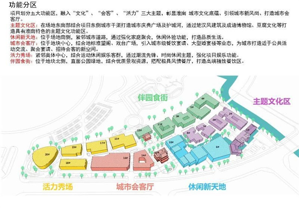 項目定位為微度假休閑商業(yè)街區,集文化、商業(yè)、旅游、展示、休閑功能為一體。整體規劃提取楚漢-民國-現代時(shí)間軸線(xiàn)概念來(lái)表達,通過(guò)融入“文化”、“會(huì )客”、“活力”三大主題,彰顯淮南城市文化底蘊、引領(lǐng)城市新風(fēng)尚、打造城市會(huì )客廳。