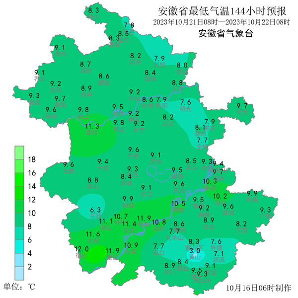 氣溫和風(fēng):16日至19日白天全省大部分地區最高氣溫24~27℃,19日夜里至21日受冷空氣影響全省平均氣溫將下降5~7℃,其中19日夜里至20日白天偏北風(fēng)力自北向南先后增至3~4級、陣風(fēng)7級左右,21日早晨淮北地區和本省山區最低氣溫降至10℃以下。