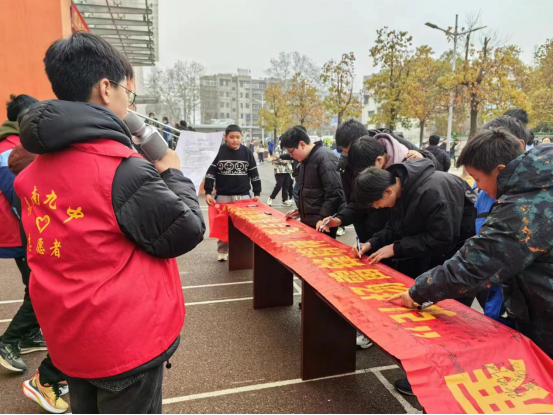 (淮南九中團委組織志愿者開(kāi)展集中簽名活動(dòng))