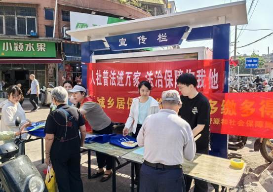 淮南市居保中心開(kāi)展社保法律法規宣傳活動(dòng)5月28日上午,市居保中心聯(lián)合田家庵區人社局在福樂(lè )街開(kāi)展以“人社普法進(jìn)萬(wàn)家,法治保障你我他”為主題的社保法律法規宣傳活動(dòng)?;顒?dòng)中,工作人員通過(guò)向群眾發(fā)放政策宣傳單,面對面為群眾解答問(wèn)題,如《社會(huì )保險經(jīng)辦條例》政策解讀、城鄉居民養老保險繳費標準、城鄉居民養老保險待遇領(lǐng)取等,與群眾形成良好互動(dòng),營(yíng)造濃厚的宣傳氛圍。此次宣傳活動(dòng),共計發(fā)放政策宣傳彩頁(yè)、宣傳扇、宣傳袋