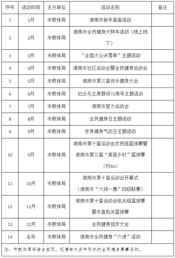 2025年淮南市教育體育局全民健身賽事活動(dòng)計劃