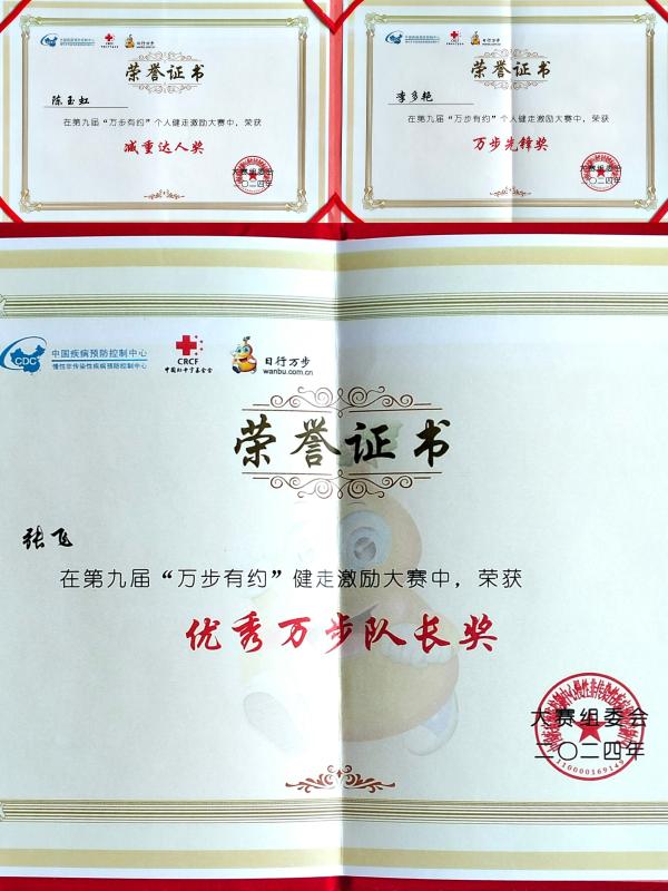 第九屆“萬(wàn)步有約”健走激勵大賽2024年5月11日至8月18日在全國開(kāi)賽,市疾控中心組隊參加了淮南市鳳臺縣賽區的比賽。在100天的比賽里,市疾控中心參賽隊員奮勇?tīng)幭?,敢闖敢拼,按照大賽的要求完成了各項賽事活動(dòng)。日前中國疾控中心慢病中心印發(fā)文件,表彰在此次大賽中取得優(yōu)異成績(jì)的單位和個(gè)人,市疾控中心榮獲中國疾控中心慢病中心“優(yōu)秀健走促進(jìn)單位獎”。