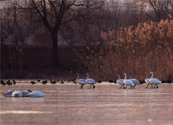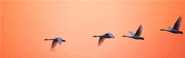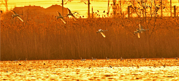 當泛紅的夕陽(yáng)懸掛在池塘對面上空,被映紅了的水面波光粼粼,隨風(fēng)蕩漾。落日前的天鵝,一改白晝時(shí)的懶散,或休閑游弋在水面,或煽動(dòng)它迷人的翅膀,顯得格外美麗動(dòng)人,仿佛是天使來(lái)到我面前,使我怦然心動(dòng),讓我的心撞擊著(zhù)相機快門(mén)咔嚓咔嚓地響個(gè)不停。