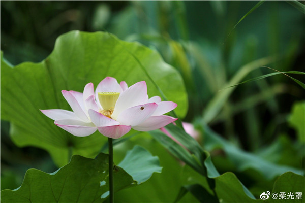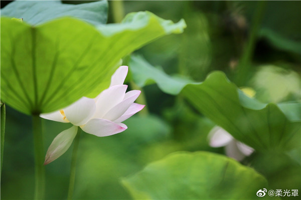 靜靜的湖面上布滿(mǎn)了碧翠欲滴的荷葉,像是插滿(mǎn)了密密麻麻的翡翠傘似的,把湖面蓋的嚴嚴實(shí)實(shí)。綠葉叢中,一枝枝荷花亭亭玉立,像嬌羞的少女,滿(mǎn)臉緋紅,微微含笑。攝影:柔光罩