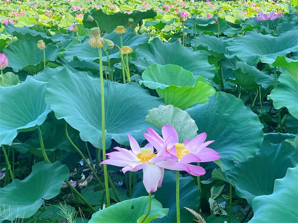 立秋剛過(guò),天氣晴好,焦崗湖內花意正濃,荷花全開(kāi)來(lái)源:焦崗湖旅游度假區